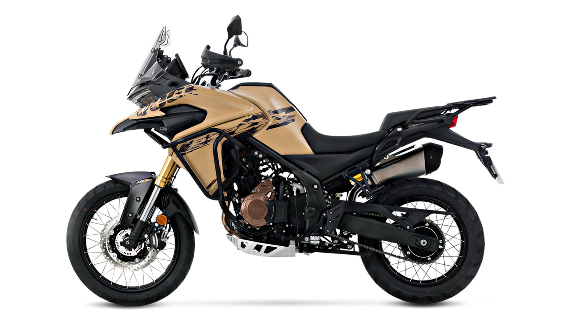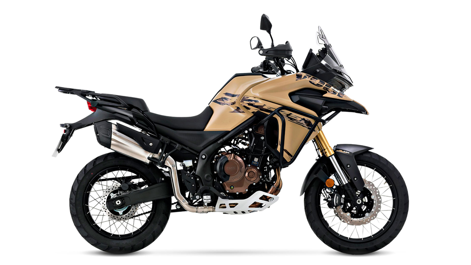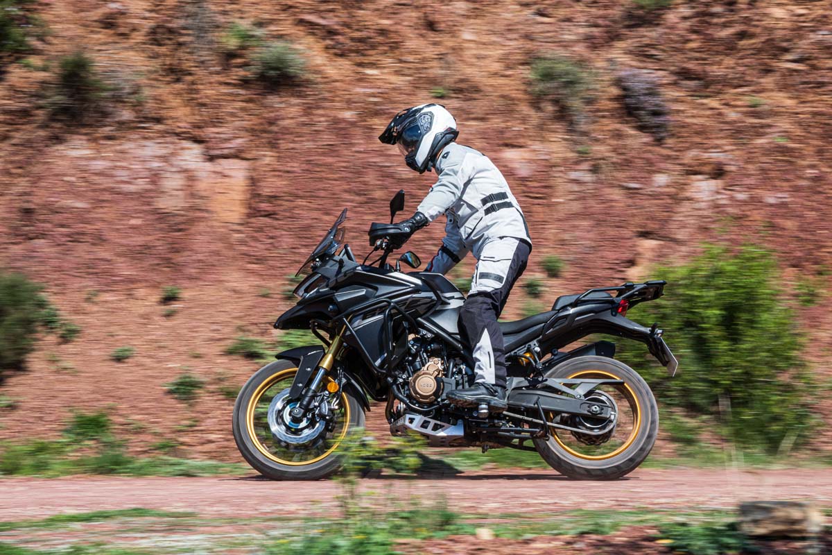 Chassiset består af en stålrørsram med aftagelig bageste subframe, hvilket giver stabilitet og robusthed både på asfalterede veje og i mere krævende terræn. Motorcyklen er udstyret med egerhjul på 19 tommer foran og 17 tommer bagtil samt justerbar Kayaba-affjedring, som sikrer en komfortabel og kontrolleret kørsel – også på ujævnt underlag.